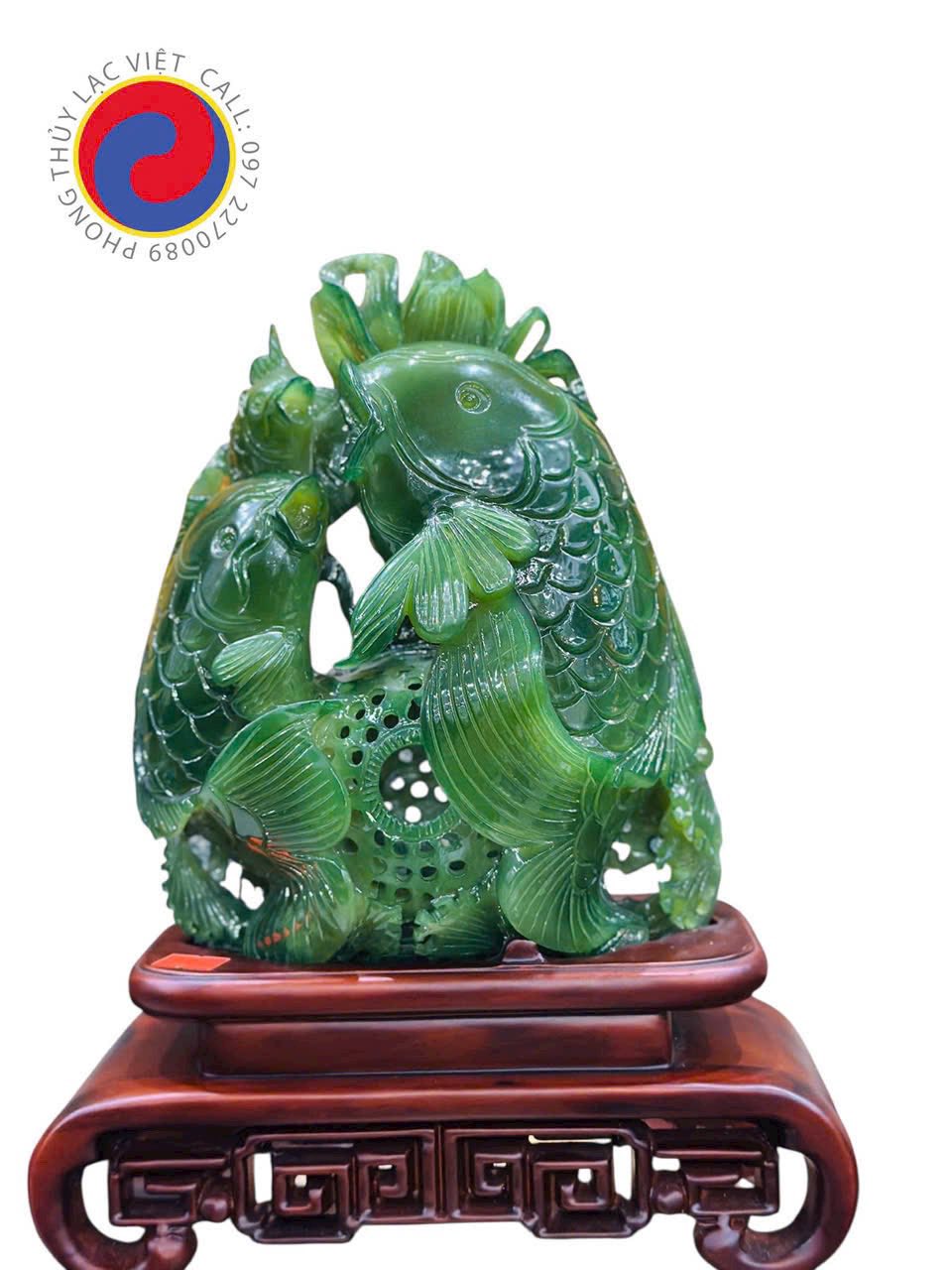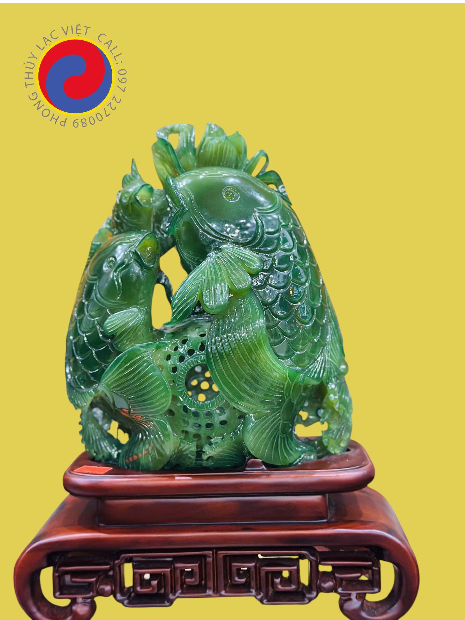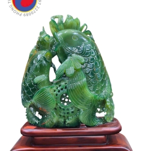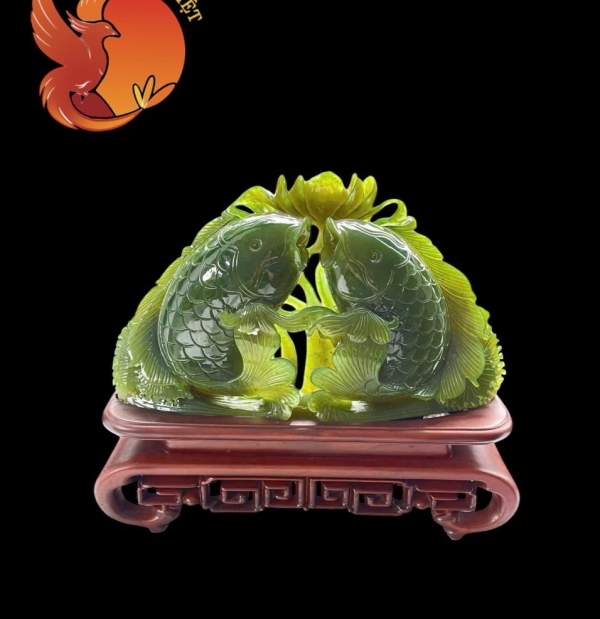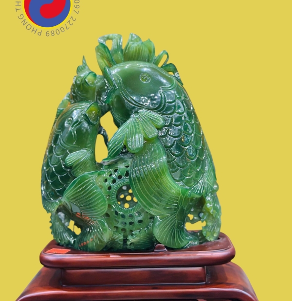 Khi nghệ thuật điêu khắc chạm tới linh khí đất trời, từng chi tiết nhỏ cũng trở thành biểu tượng phong thủy mạnh mẽ. Tứ Ngư Tụ Tài – Song Ngư Tụ Phúc là một tác phẩm độc đáo, được chế tác hoàn toàn thủ công từ ngọc Tụ Nham – một trong Tứ đại danh ngọc của Trung Hoa cổ.